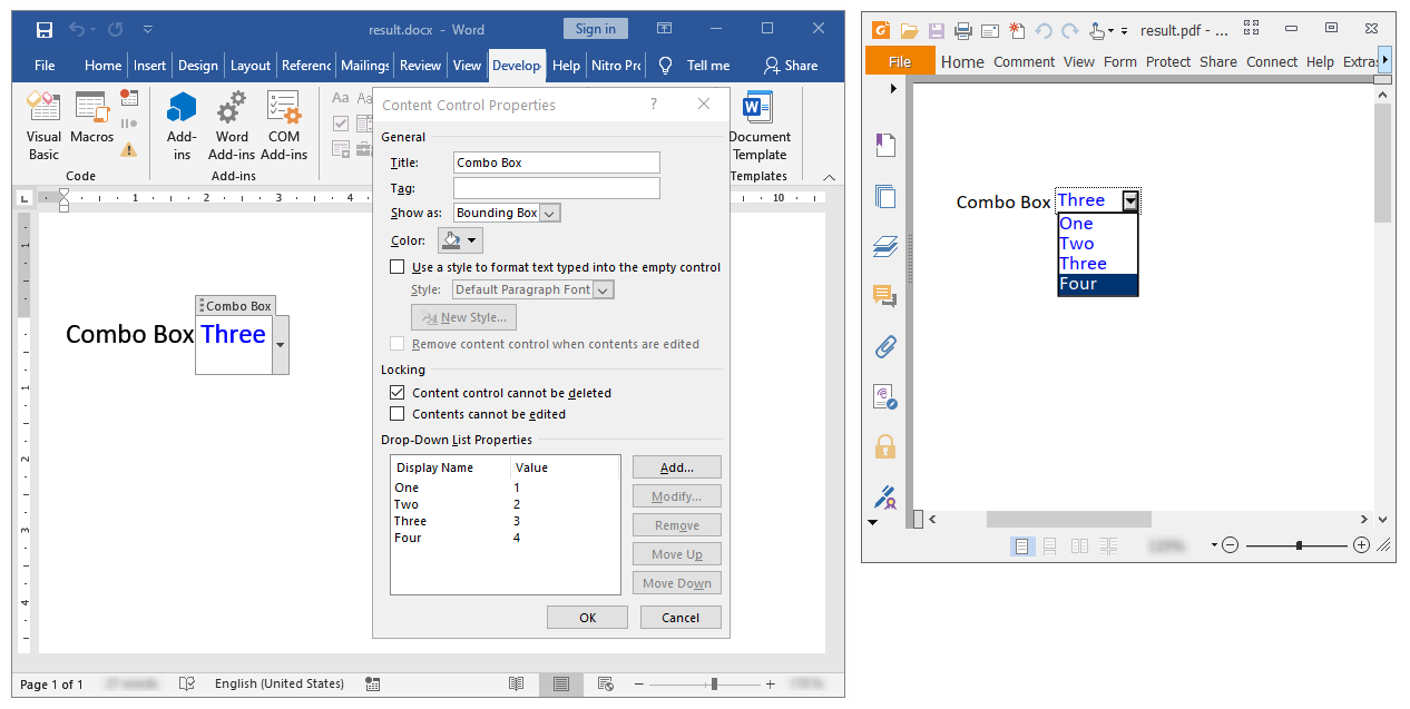 /// Inserting a Combo Box content control.