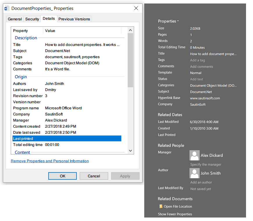 /// Details: https://sautinsoft.com/products/document/help/net/developer-guide/document-properties.php