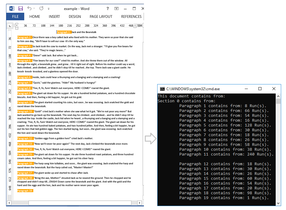 /// Iterates through a document and count the amount of Paragraphs and Runs.