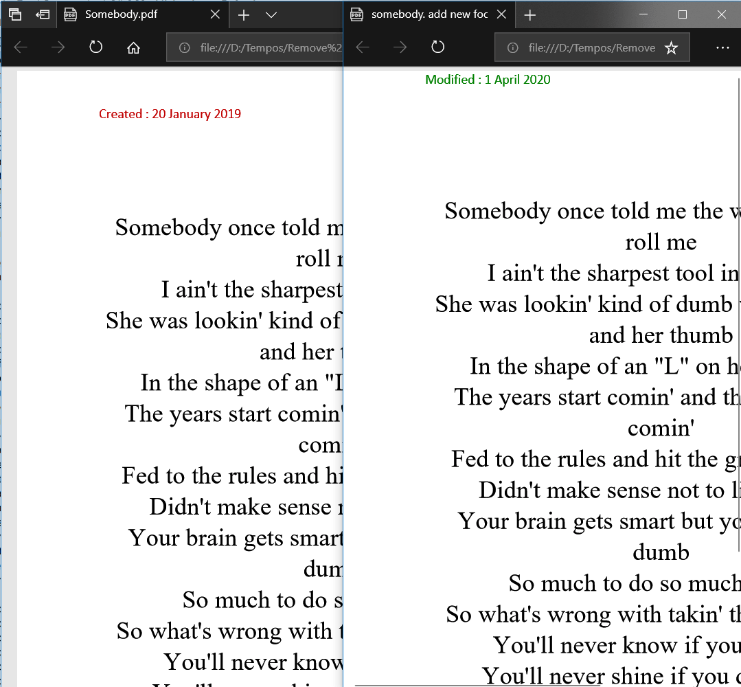 Для примера: У нас есть PDF файл и нам нужно удалить старый Header: "Created : 20 January 2019" и вставить новый Header: " Modified : 1 April 2020"